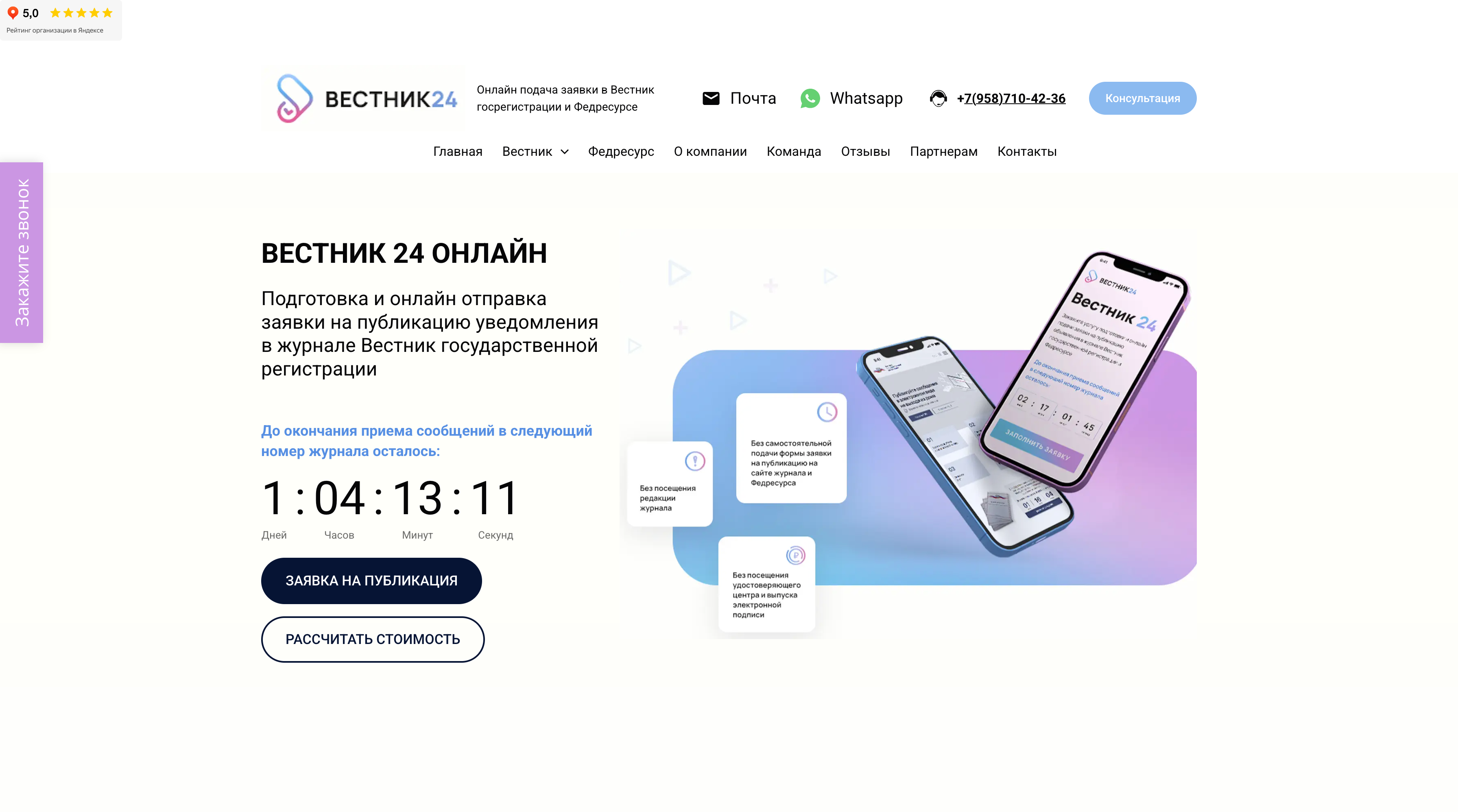 Заявки на публикацию принимаются на сайте ежедневно и круглосуточно по всей России